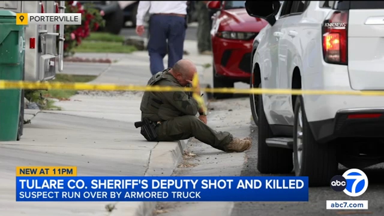 A California detective was shot and killed while serving an eviction notice, and the suspect was fatally run over by an armored truck. Full story: https://abc7.com/post/tulare-county-s…